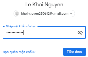 - Mật khẩu: nhập mật khẩu đăng nhập Gmail.