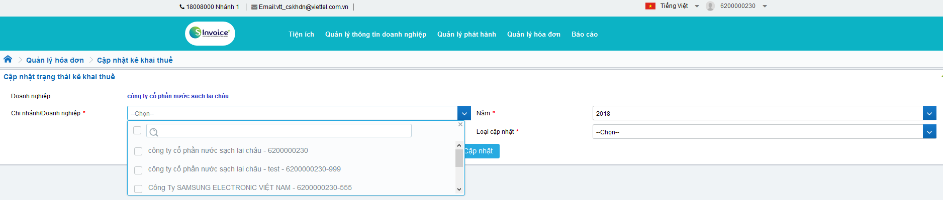 Nhấn Cập nhật để thực hiện kê khai thuế
