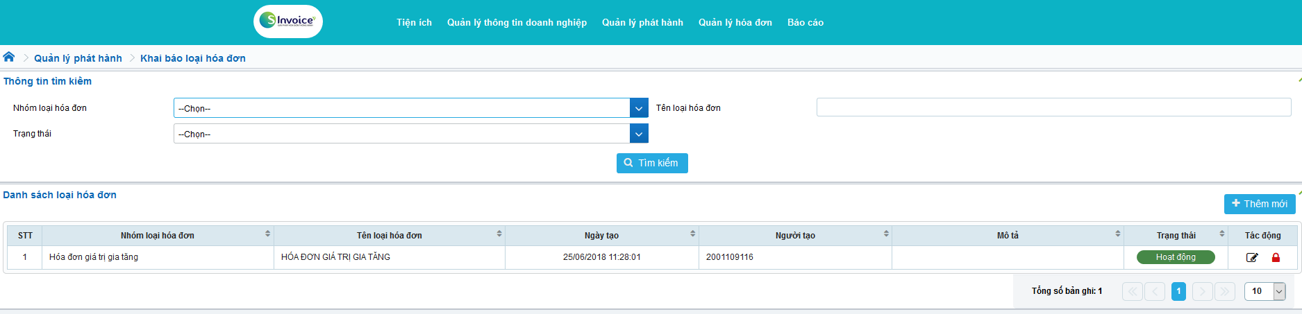 Người dùng chỉ tạo 1 loại (tên) hóa đơn: