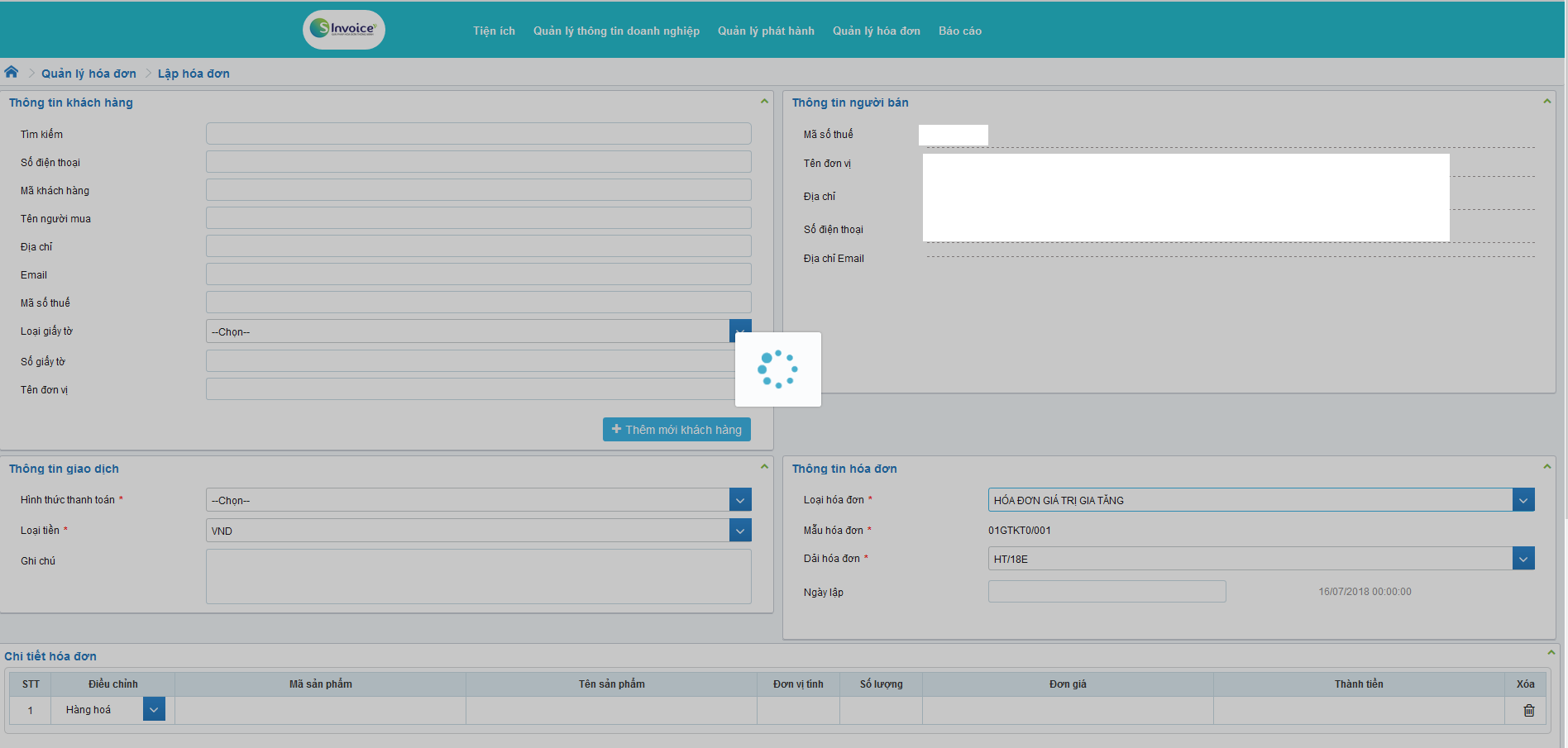 2. Quay trở lại màn hình Lập hóa đơn sẽ hết quay và lập hóa đơn bình thường.