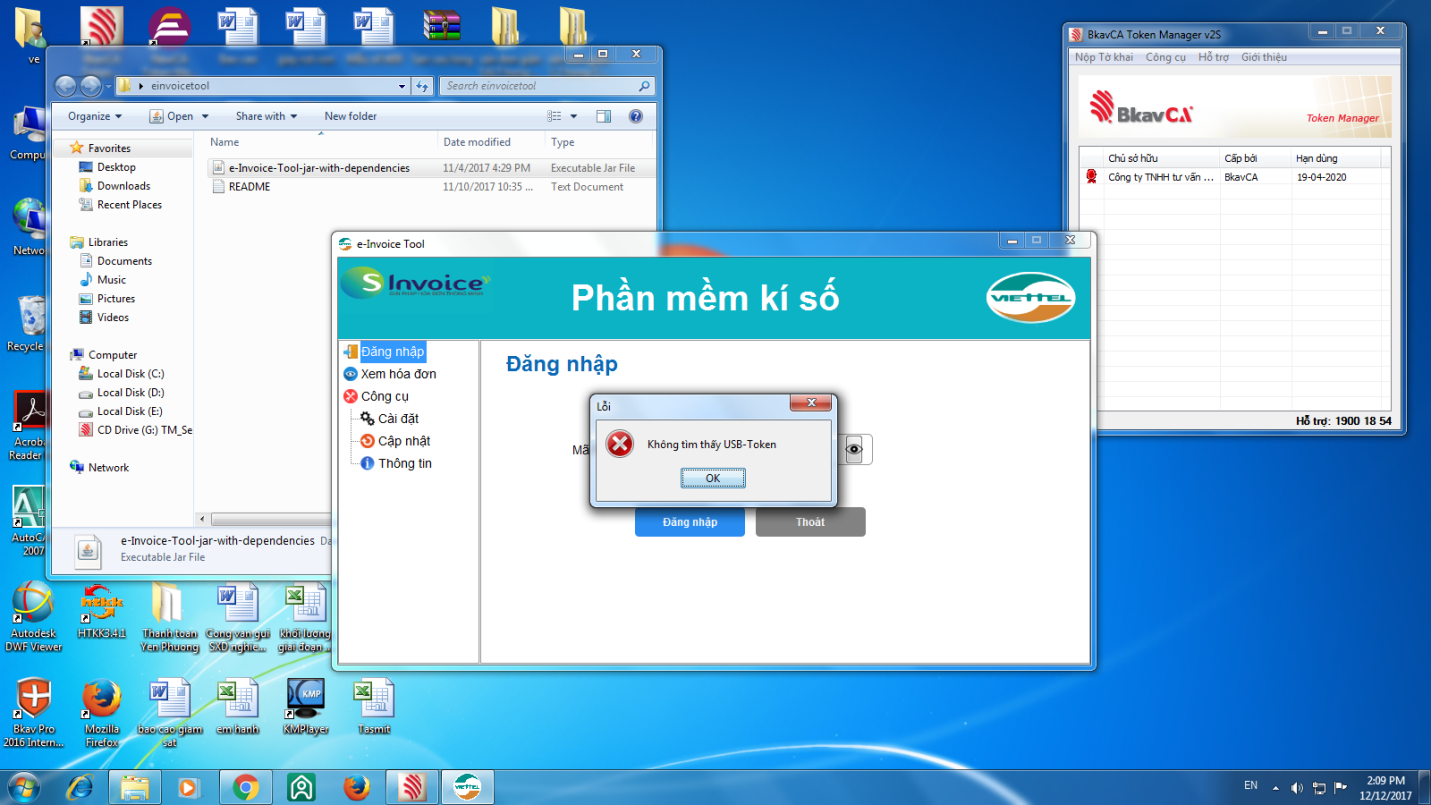 “Không thể kết nối đến USB-TOKEN. Yêu cầu cắm USB-TOKEN hoặc cài đặt phần mềm ký số của Viettel”