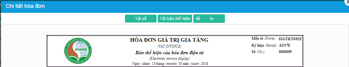 18. Mô tả: Khách hàng thay đổi logo nên phải chọn lại mẫu hóa đơn