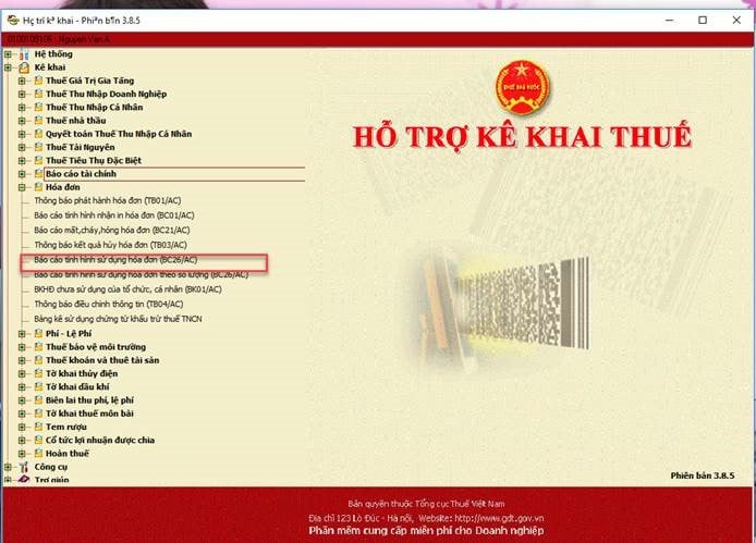Người dùng thực hiện theo bước sau để lấy thông tin cơ quan thuế