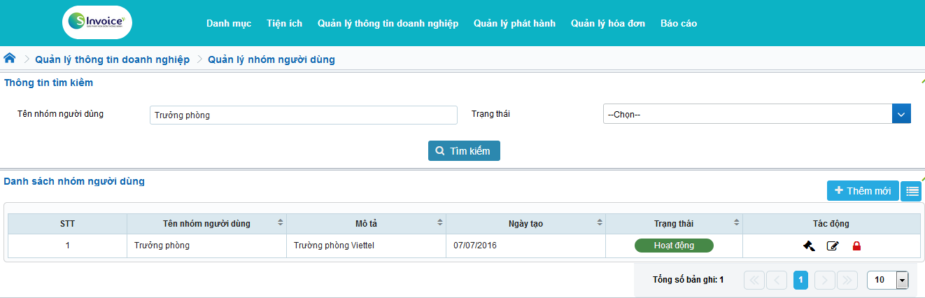 Bước 1: Vào màn hình Quản lý thông tin doanh nghiệp >> Quản lý nhóm người dùng