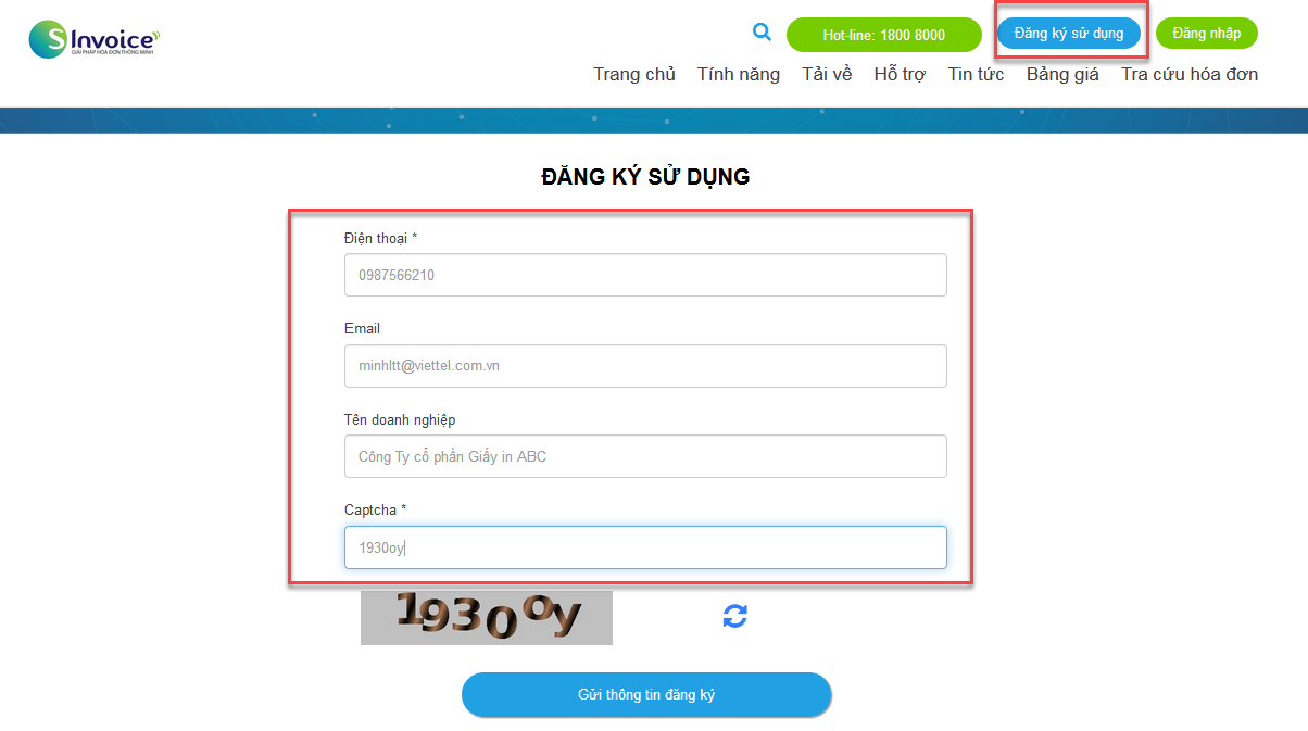 Vào trang https://hoadon.3tc.vn/dang-ky-su-dung- > Nhấn vào Đăng ký sử dụng-> Nhập và thông tin và gửi thông tin đăng ký