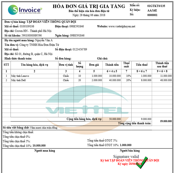 5. Mẫu hóa đơn giá trị gia tăng thuế tổng