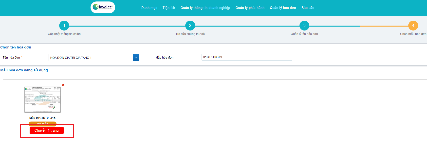 Theo hình dưới đây là doanh nghiệp đang lựa chọn hóa đơn một trang để hoạt động: