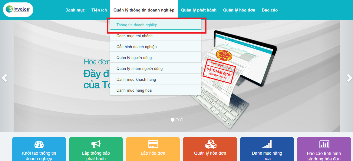 - Thông tin doanh nghiệp ở chức năng này sẽ hiển thị ở phần Thông tin người bán thuộc Module Quản lý hóa đơn/Lập hóa đơn.