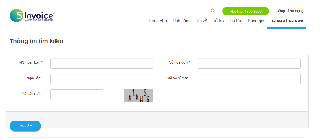 Hình 1: Màn hình giao diện tra cứu hóa đơn