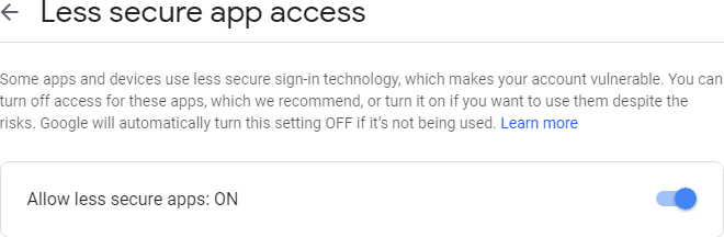 Đăng nhập vào và nhấn chọn Allow apps that use less secure sign in