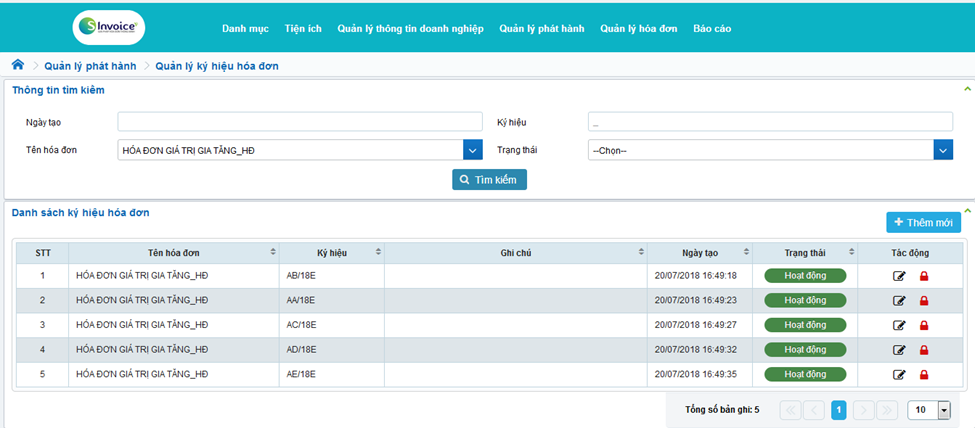 - 1 tên hóa đơn tương ứng với nhiều ký hiệu hóa đơn, ví dụ: Tên hóa đơn Giá trị gia tăng_HĐ sẽ tạo được nhiều ký hiệu hóa đơn AA/18E, AB/18E, AC/18E….