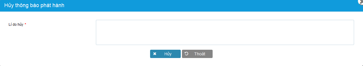 của dòng tương ứng với Thông báo phát hành cần hủy bỏ->Hệ thống hiển thị popup để ND nhập lý do hủy bỏ