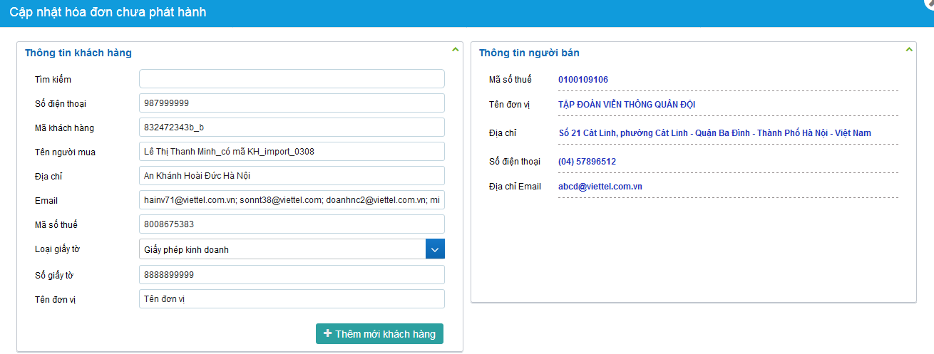 * Cập nhật hóa đơn chưa phát hành