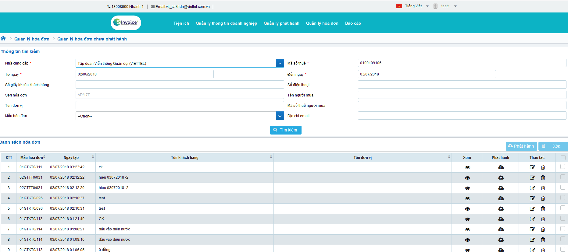 - Phát hành hóa đơn