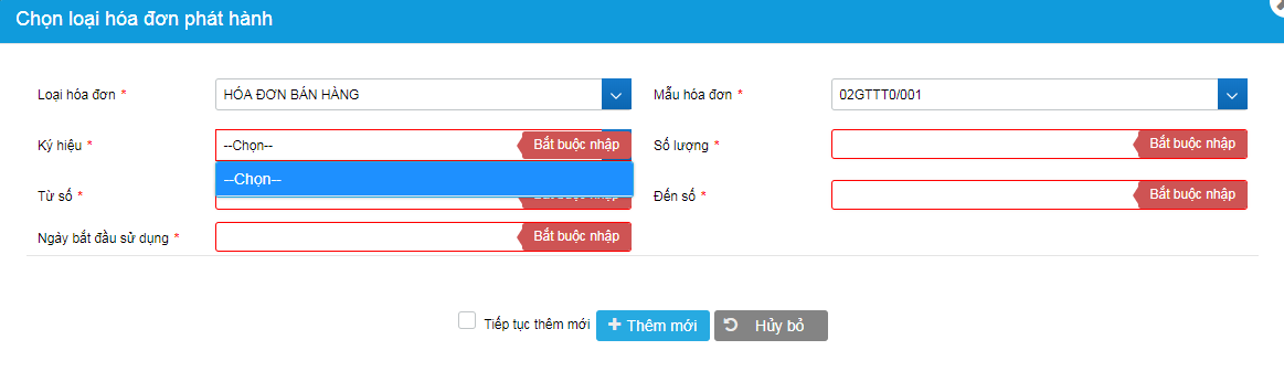 Chú ý: Trường hợp sử dụng chung loại hóa đơn khi sử dụng sẽ gây lỗi trong quá trình thao tác lập hóa đơn.