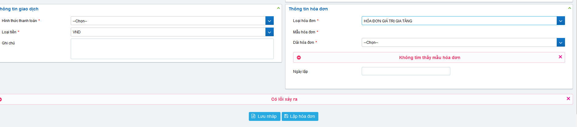 53. Lỗi không tìm thấy mẫu hóa đơn khi thực hiện lập hóa đơn