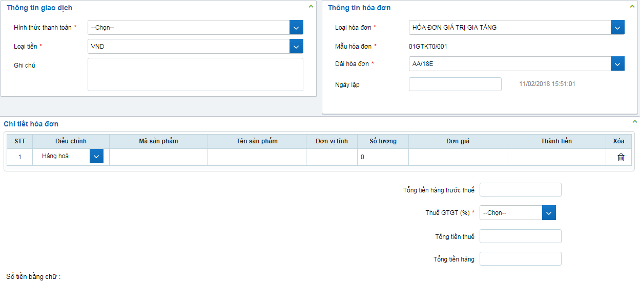 - Người dùng vào lại hệ thống, thao tác đầu tiên sau khi vào lại là lập hóa đơn chuyển đổi
