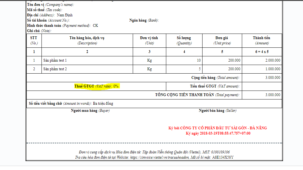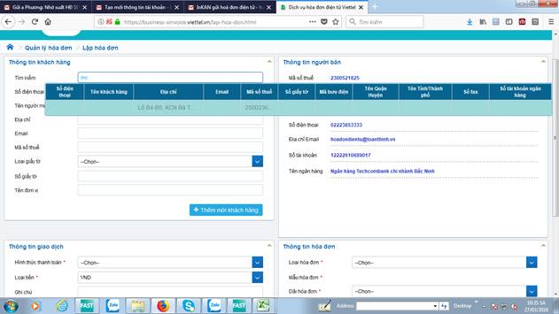 Sửa lại đúng dữ liệu tài khoản của một ngân hàng, chỉ có số, không có chữ để hệ thống Lập hóa đơn thành công