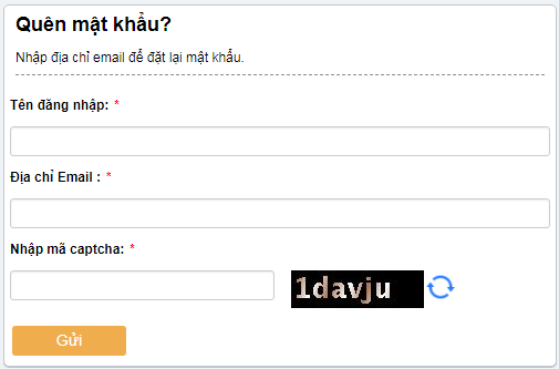 Xử lý: Người dùng thực hiện lại chức năng Quên mật khẩu, chọn mail mới nhất hệ thống gửi về và làm theo hướng dẫn trong mail mới