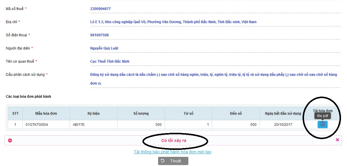 Lỗi 58: Lập hóa đơn, hệ thống báo :”Có lỗi xảy ra”