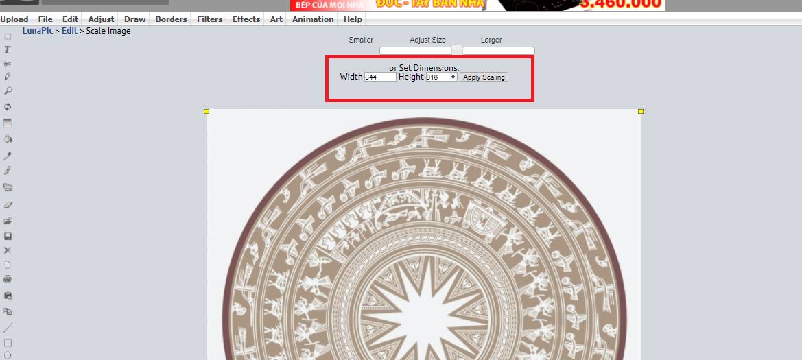 Nhấn Apply scalling để chấp nhận thay đổi. Nhấn save để lưu ảnh về máy