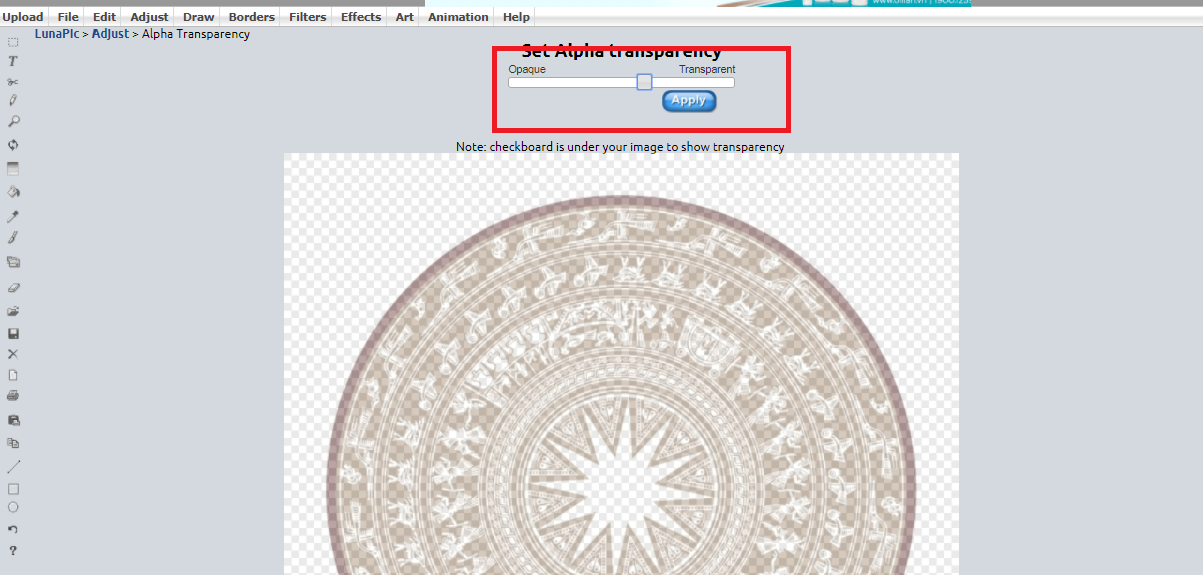Mở theo đường link sau: Adjust/Alpha Transparency. Màn hình sẽ hiển thị như sau