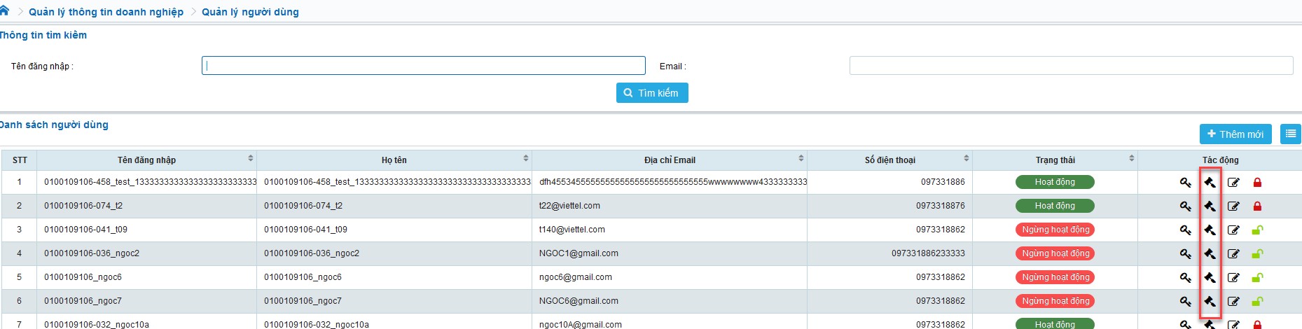 Bước 1: Vào màn hình Quản lý thông tin doanh nghiệp >> Quản lý người dùng