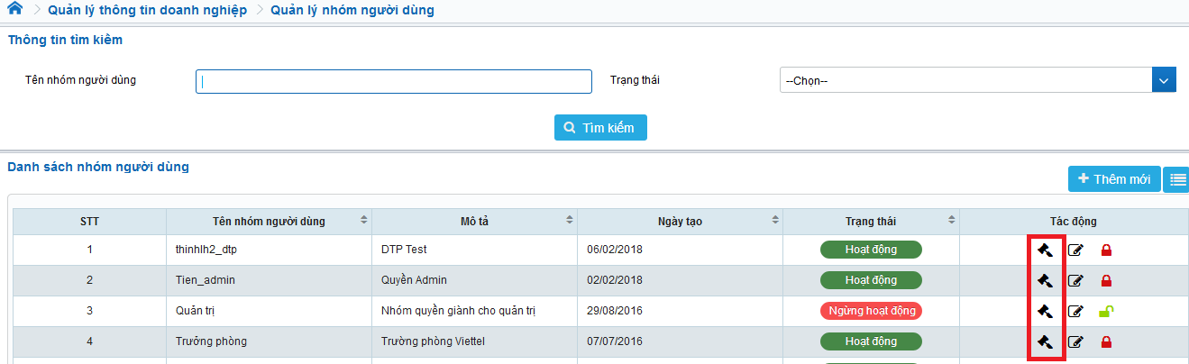 + Nếu không nhập giá trị trường tên nhóm người dùng mà nhấn tìm kiếm sẽ hiển thị tất cả các bản ghi có trên hệ thống