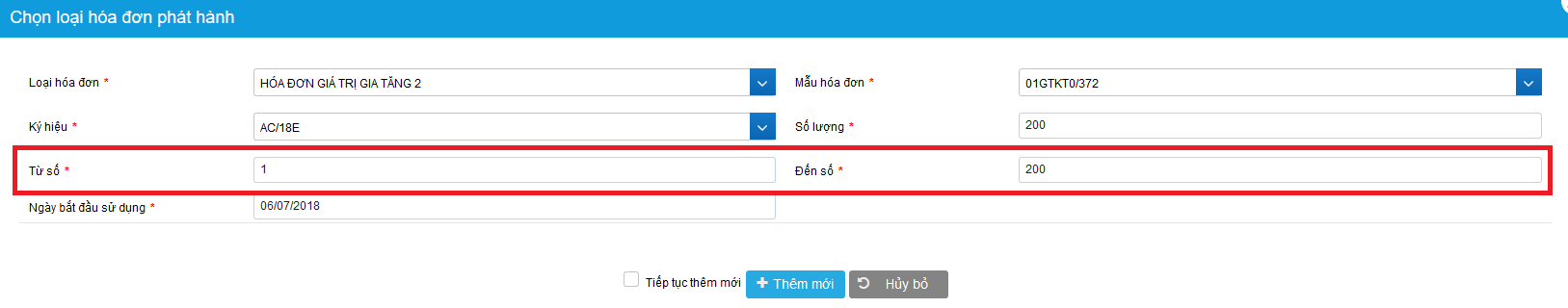 Khoảng từ số hóa đơn đến số hóa đơn theo hình dưới được gọi là dải hóa đơn: